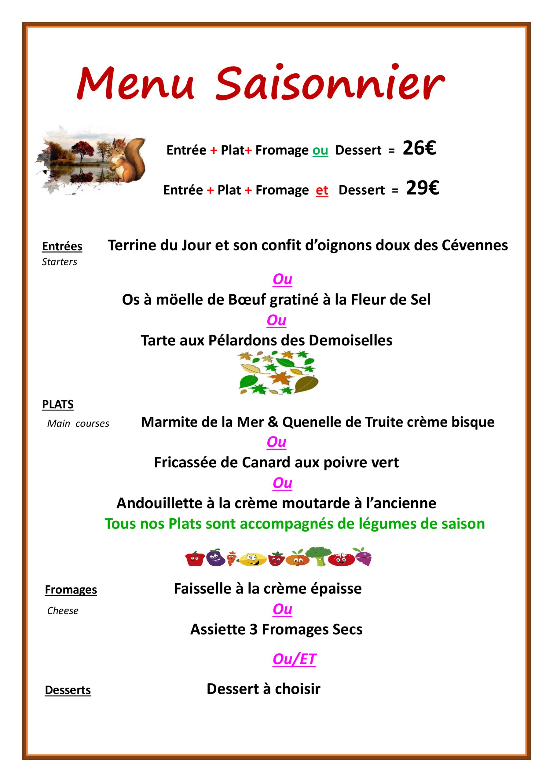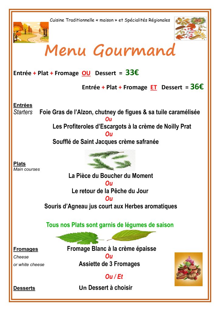 Nos différents menus